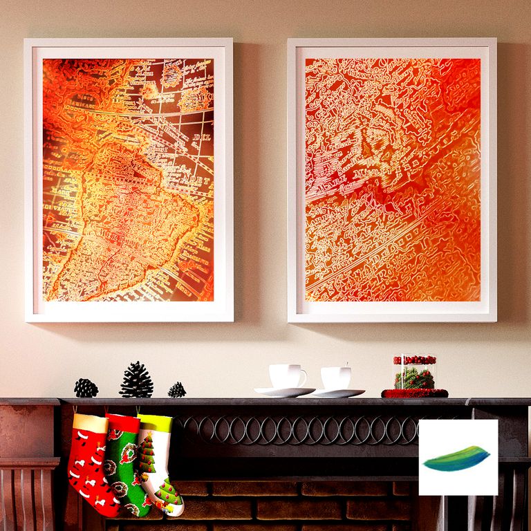 Стилизованные старинные карты в ярких теплых оттенках - оригинальные современные арт-постеры. Подходят для украшения любых видов интерьера.