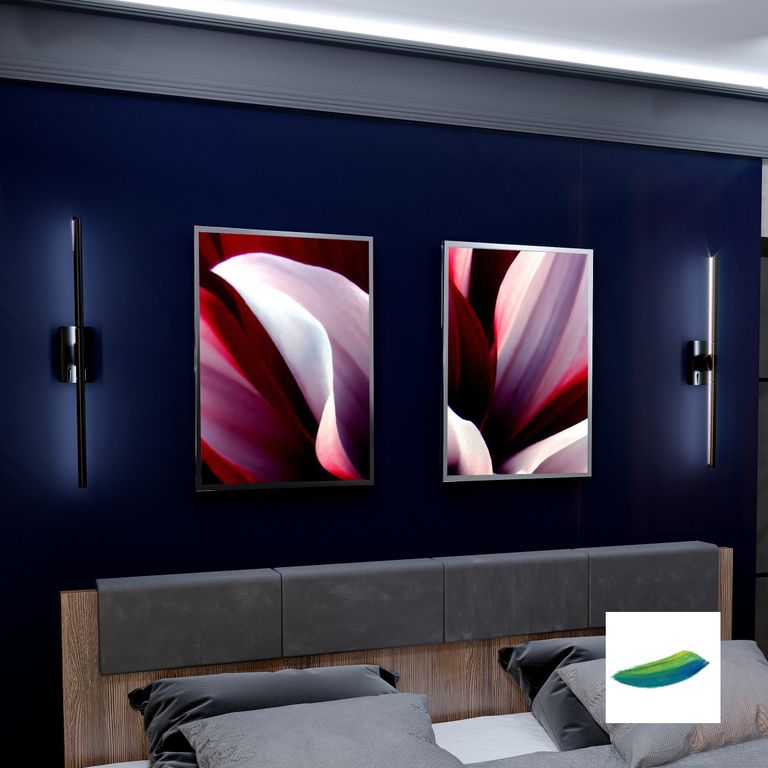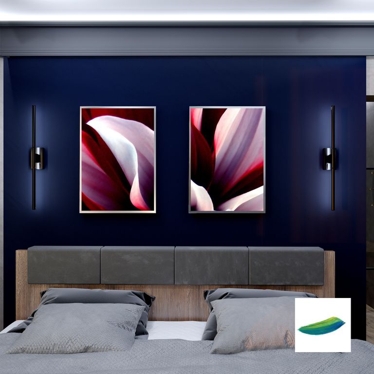Интерьерные постеры в ярких рубиновых, красных и контрастных белых, розовых цветах с крупными красочными формами подобных лепесткам цветов прекрасно подойдут для декорирования интерьера спальни. Абстрактный экспрессионизм в интерьерных постерах эффектный и уместный подойдёт для декорирования интерьера спальни. Принты хорошо будут смотреться в тонких серебряных рамах и на холстах без рам. Интерьерные постеры также подойдут для оформления интерьера кафе, ресторана или SPA-салона.