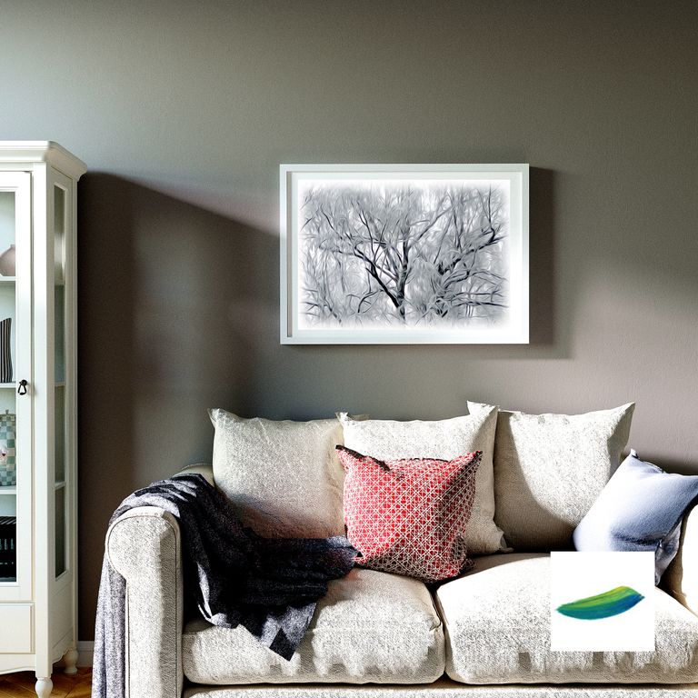 Постер подходит для декорирования интерьера гостиной или столовой. Ощущение блистательного великолепия снежной зимы передано в картине. Принт отлично впишется в интерьер с преобладанием холодных оттенков в декоре.