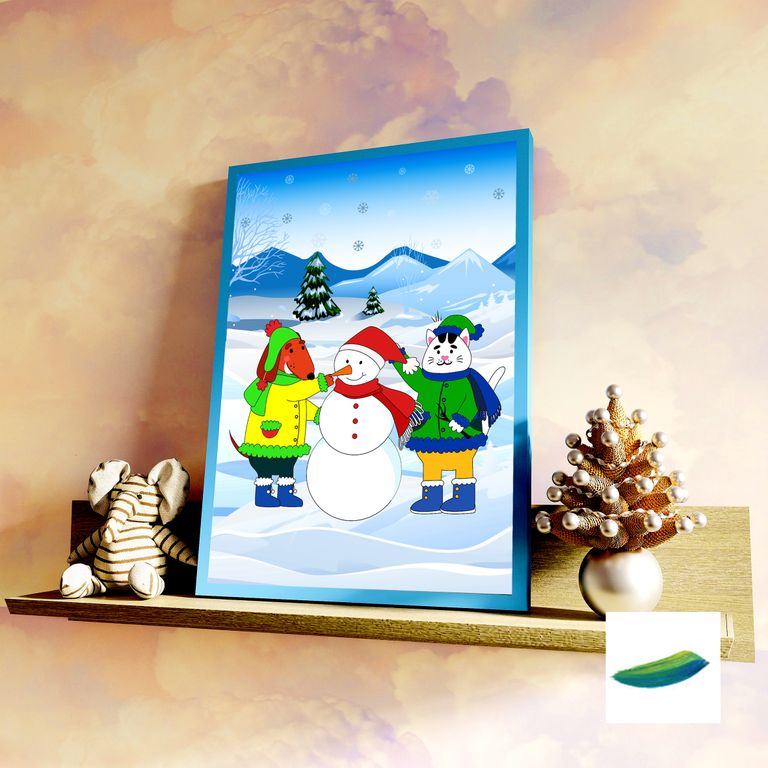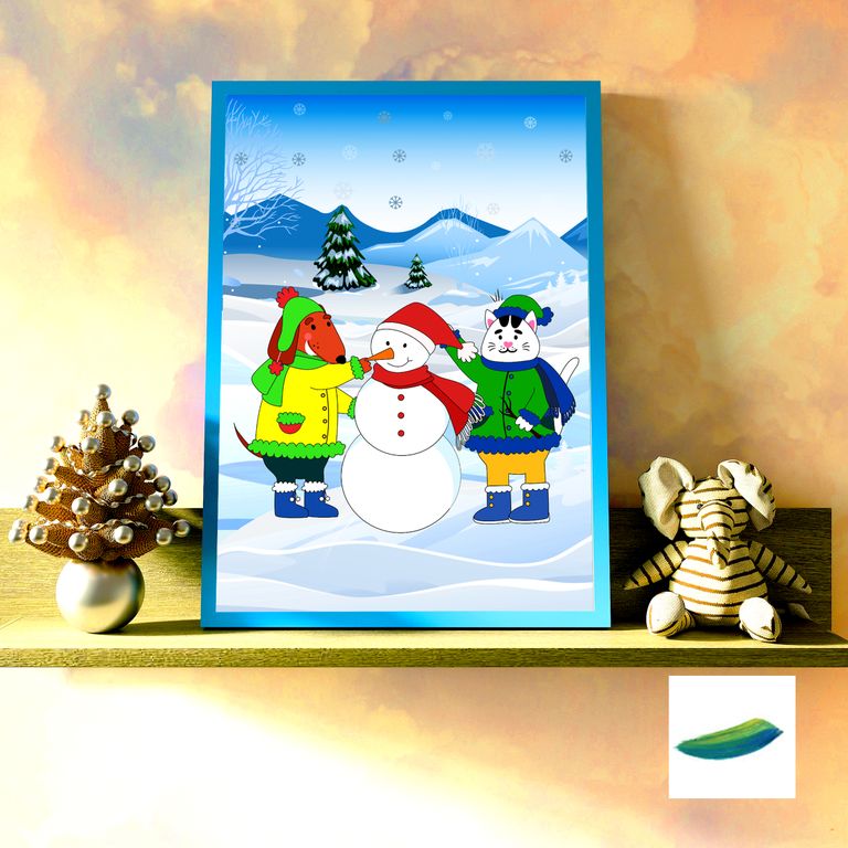 Как же много разных развлечений зимой! Наши друзья слепили снеговика! Он такой милый! Мы продолжаем коллекцию постеров для детей про приключения весёлого котёнка Мишани и его лучшего друга щенка Тимурчика.